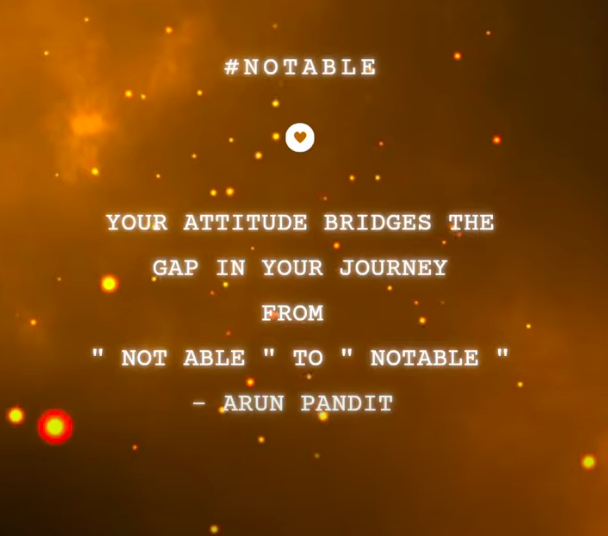 Your attitude Bridges the gap in your journey from ” Not Able ” To ” Notable ” – Arun Pandit