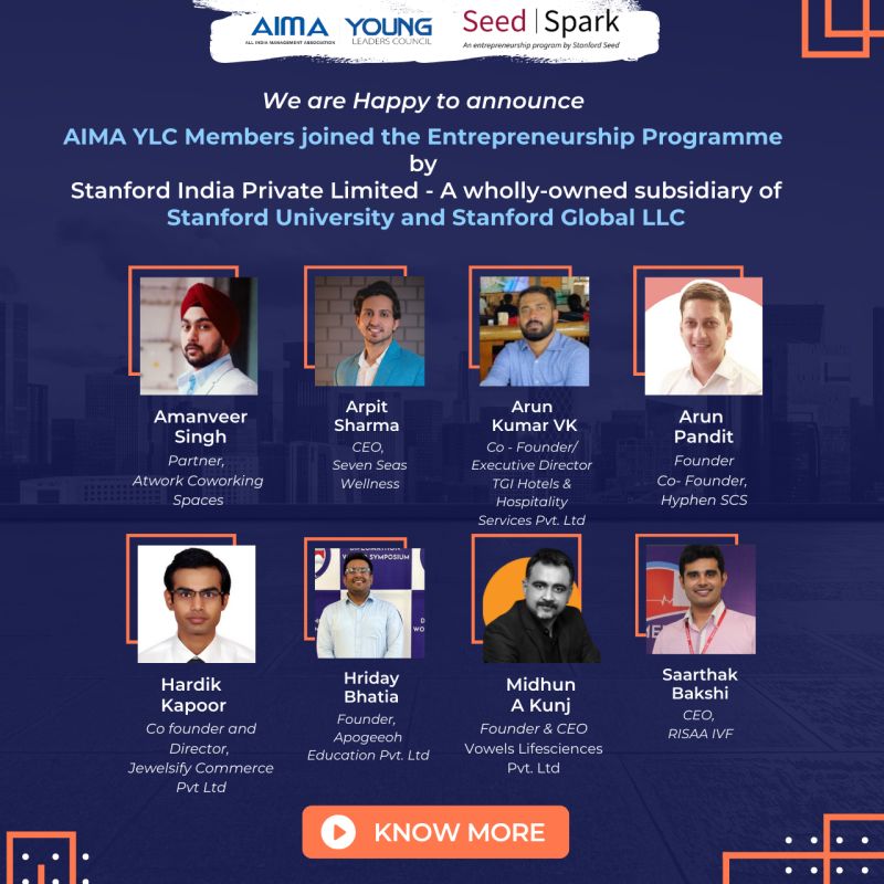 Thank you Young Leaders Council AIMA for giving me and Hyphen SCS the platform to be a part of the prestigious Seed Spark program: The Entrepreneurship Programme by Stanford India Private Limited – A wholly-owned subsidiary of Stanford University and Stanford Global LLC.